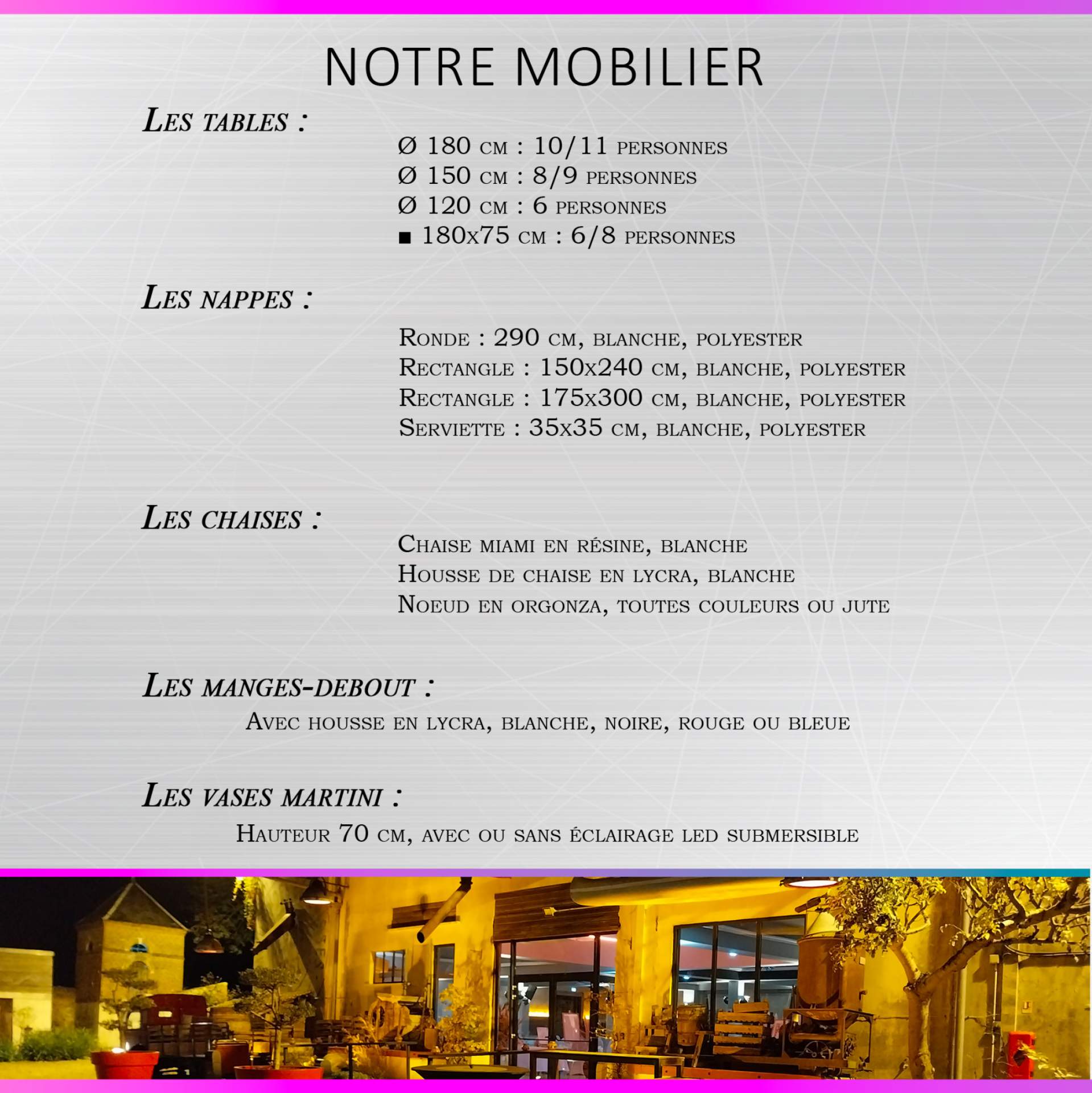 Nos fiches tarifs nous consulter